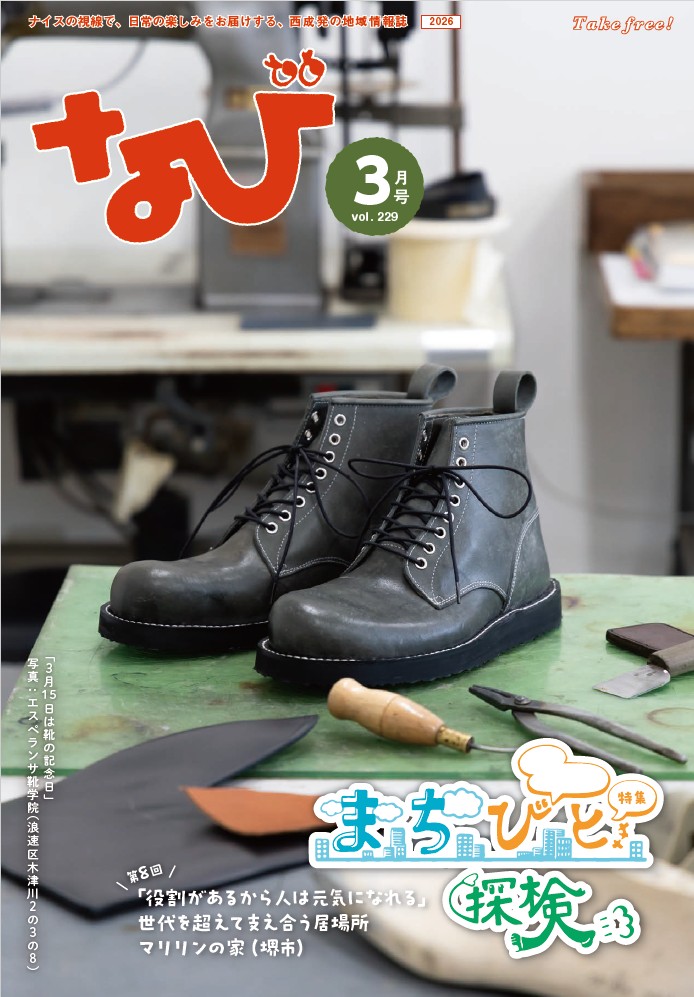 ・特集 まちびと探検 ― 第7回「役割があるから人は元気になれる」 世代を超えて支えあう居場所マリリンの家(堺市) ・にしなりもん ― 初めてのタピオカ体験!「Pamer」 ・melody of smiles ・近ツ橋 ― 詐欺被害を防ごう! ・些事争論 ― 西成と映画 ・葉っぱの吐息 ― 「また会える日まで」の巻 ・皮算用胸算用 ・いい湯かげん ― 再審不開始、裁判官は何に怯えたのか ・松向寺さんの心の時間 ・ワタシの1枚 ― 風の教会 & Floating Lanterns